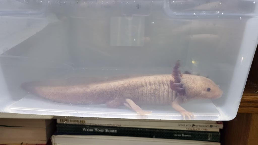 These animals boast incredible regeneration abilities which biologists study, including the ability to regenerate limbs and parts of their nervous system. Due to this, they have been raised like ‘lab rats’, so to speak, living permanently in tubs they could barely turn around in or being crowded extensively in a tank after being confirmed as a sexed adult.